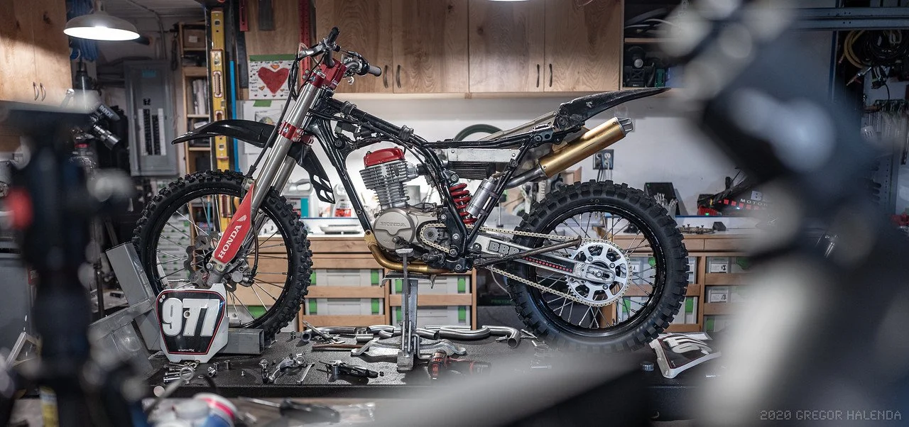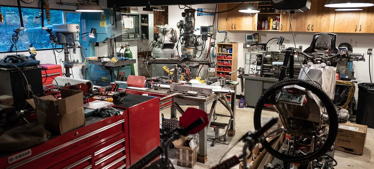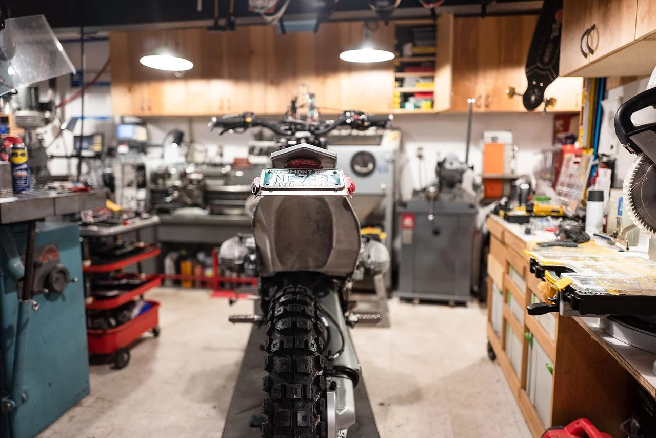 When Gregor left behind his sprawling New York City motorcycle shop and downsized into a 485-square-foot garage, he had his work cut out for him. Seven motorcycles, a mill, a lathe, a welding table, and the gear from an entire warehouse… all condensed into less than 500 square feet.