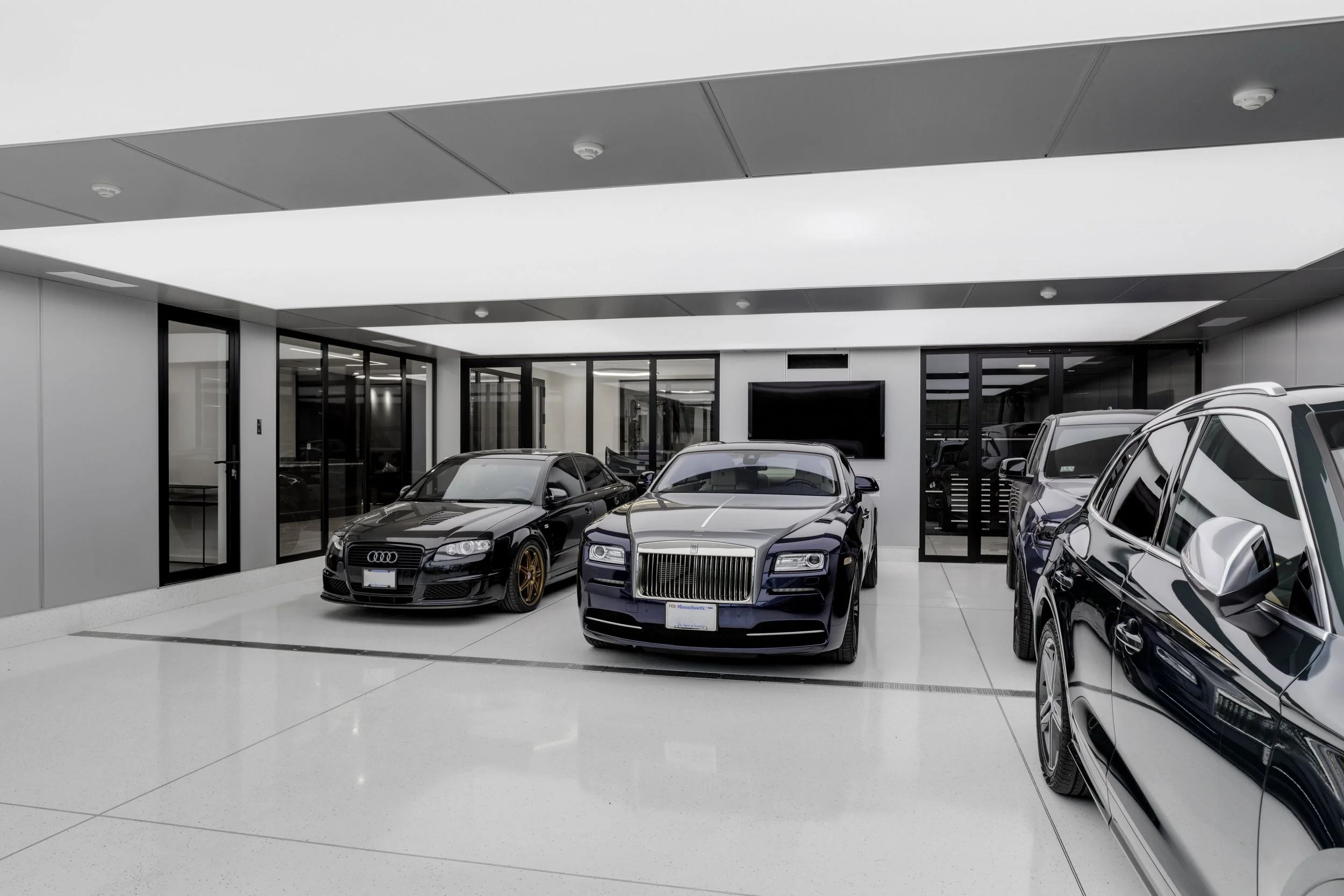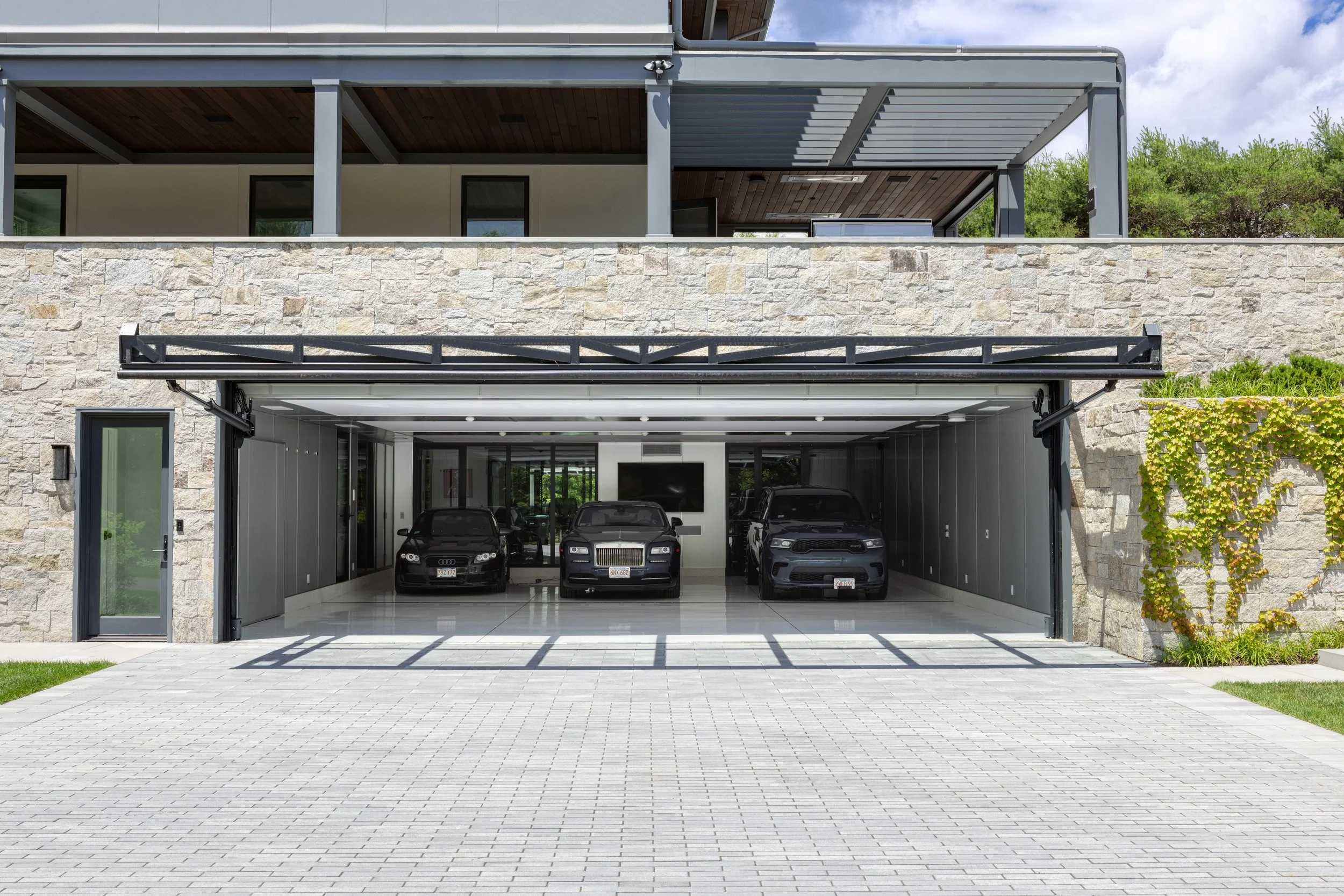 A modern Boston-area home where passion has taken center stage. The garage and the cars live as naturally inside the home as out.