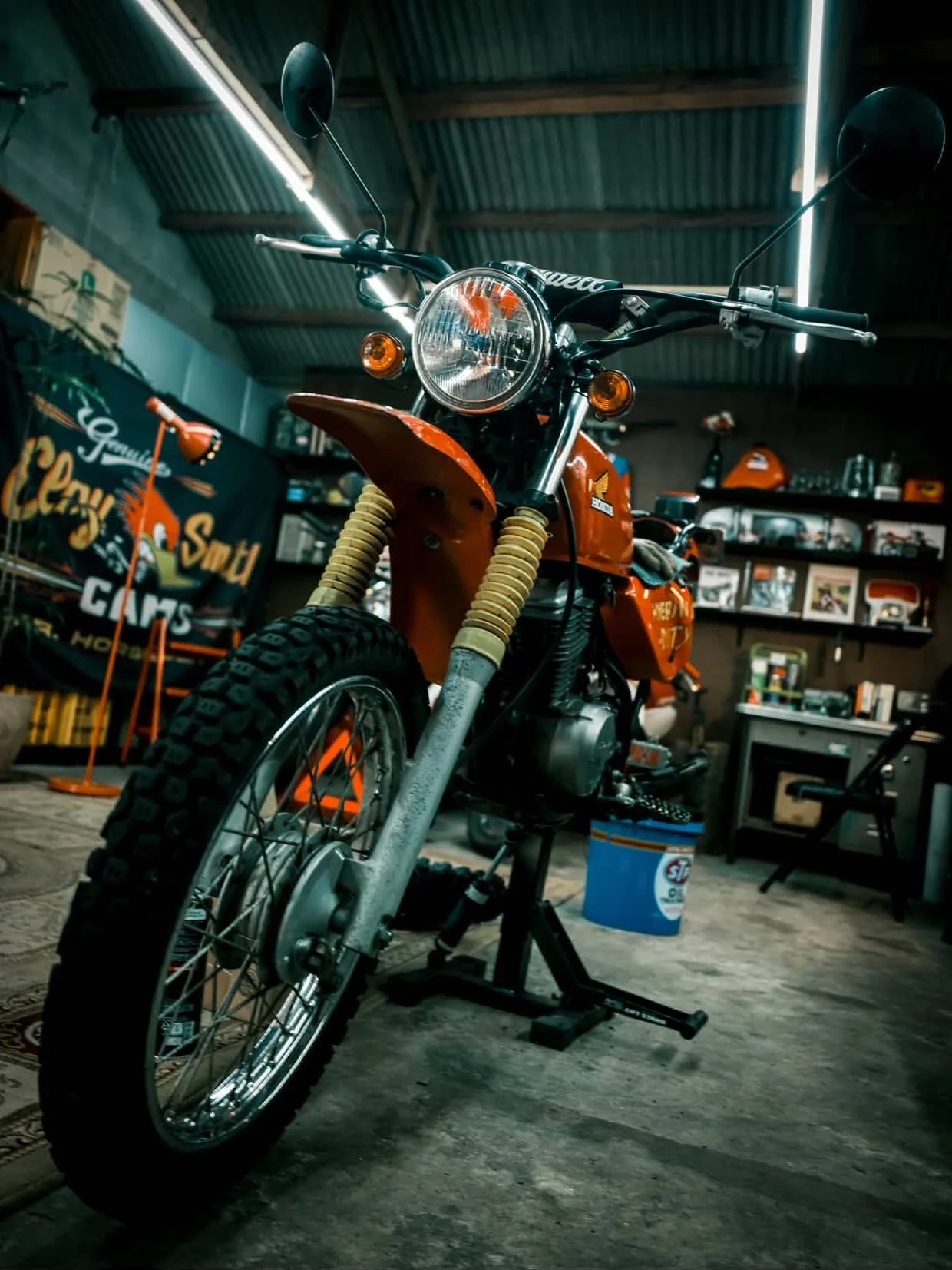 On a remote island in South Korea, a converted citrus warehouse has become a workshop where vintage motocross bikes are restored with patience, precision, and plenty of character.