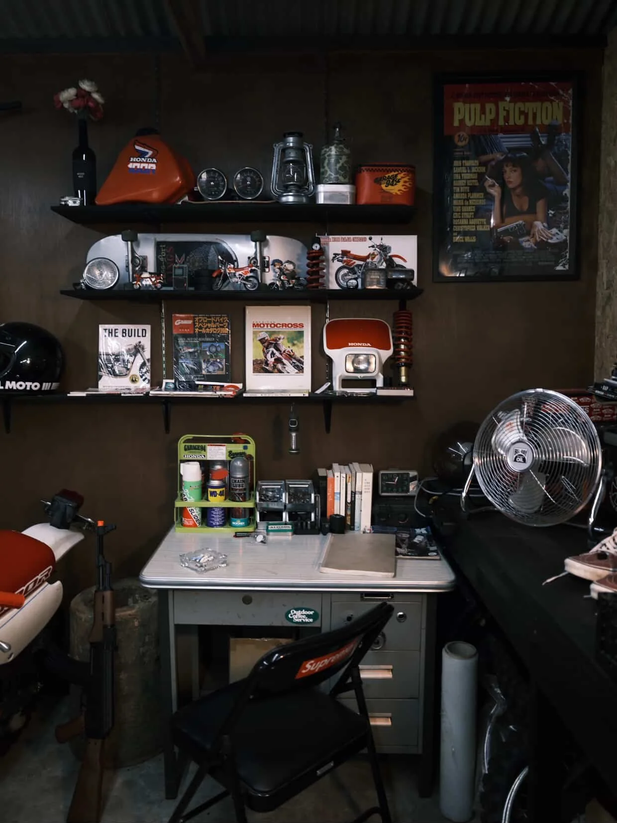 This isn’t just a workshop, it’s a story in progress. On South Korea’s Jeju Island, an old citrus storage building has been reborn as a space dedicated to vintage motocross. The walls are lined with tools, race memorabilia, and the floor and workbenches are littered with a number of projects underway. At the center of Puzzle Garage sit vintage Honda motorcycles.